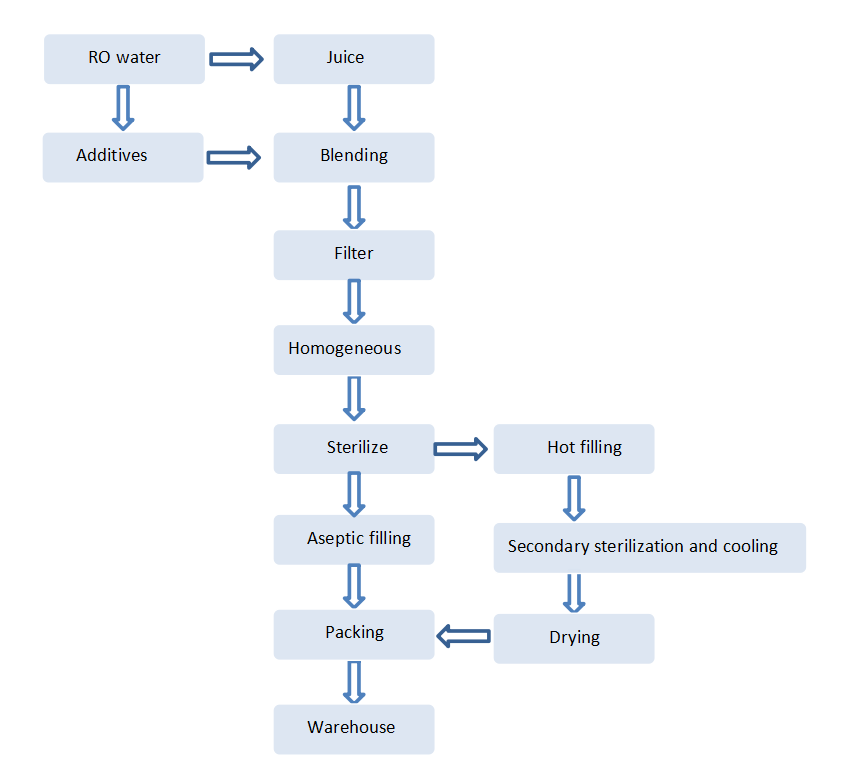 1 | Materia prima | Varios jugo de fruta, jugo concentrado, jugo en polvo, agua de RO, aditivo |